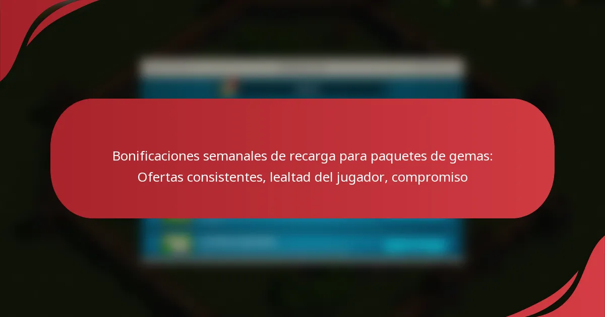 Los bonos semanales de recarga para paquetes de gemas son ofertas promocionales que recompensan a los jugadores por comprar moneda del juego. Estos bonos están diseñados para mejorar la lealtad y el compromiso de los jugadores al proporcionar un valor adicional con cada compra.